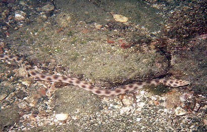 The tiger snake eel is totally harmless, and spends its time rooting through the sand looking for crustaceans.