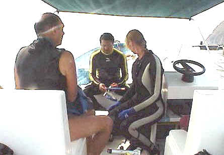 Before the Discovery Channel divers could start filming, a pre-dive briefing was given by Susan Dearing, owner of Underworld Scuba. Susan is a PADI, CMAS and YMCA Instructor. Though an easy dive, the 300-foot-long shipwreck has many compartments and it's easy to get disoriented.