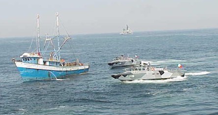The Interceptors fired their machine guns, and quickly took control of the bad guys, boarding the fishing vessel in less than a minute's time. The helicopter circled above, ready to lend assistance, if called in. More photos.