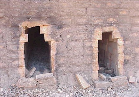 | Photo above: Space cleared to build oven Photo right: A finished oven, sealed with adobe, for firing the bricks it is made out of.
