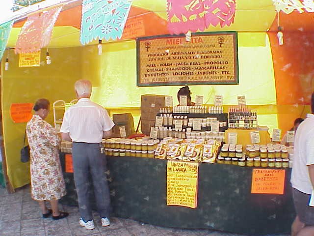 Frequently there are exhibitors (most recently from Oaxaca) with a variety of times to sell, from jewelry to clothing to native liqueurs. |