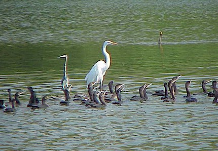 A snowy egret and a gray heron make sure they have their ducks in a row in the Miramar Lagoon.