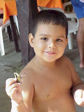 A local child proudly shows off his pet bug.