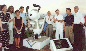 Ambassador Snoopy is donated by their children: Val Peterson Koens, John Peterson and Steve Peterson who continue the legacy and love of Manzanillo. It is the only Snoopy statue residing outside of the United States. Snoopy is visited daily by hundreds of people and is a well known favorite among Mexican children, whose first word in English is probably "Snoopy"! The 6-ft. tall sculpture, designed by Wanda Mumm, and executed by Wanda Mumm and Armando Gutiérrez G., was financed by the family of Lloyd and Ardis Peterson. It was transported at no charge to Manzanillo by Sun Country Airlines. |