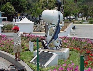 To see Snoopy when you visit Manzanillo, go to "El Centro," and you'll find him near the water behind the giant blue sailfish.