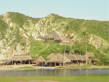 The thatched-roof restaurants at Maruata, a perfect polynesian-style setting |