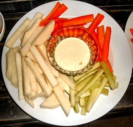 Fresh home-grown veggies with our to-die-for dip just whets the appetite for what is to come. |