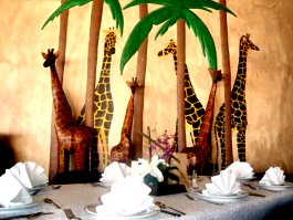 silverware, dishware, tablecloths, furniture, such as tables and chairs (the equipales of